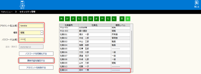 「保守」の「セキュリティ」画面より設定します。(設定権限のある方にて設定登録が可能です。)