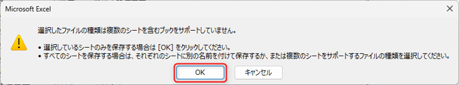 - 下記メッセージが表示されますので、[OK]をクリックします。