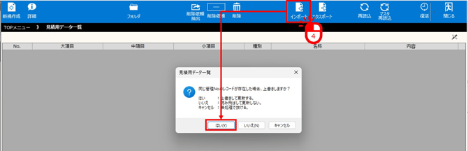 TOPメニュー[保守]-[見積用データ]にて登録が可能です。